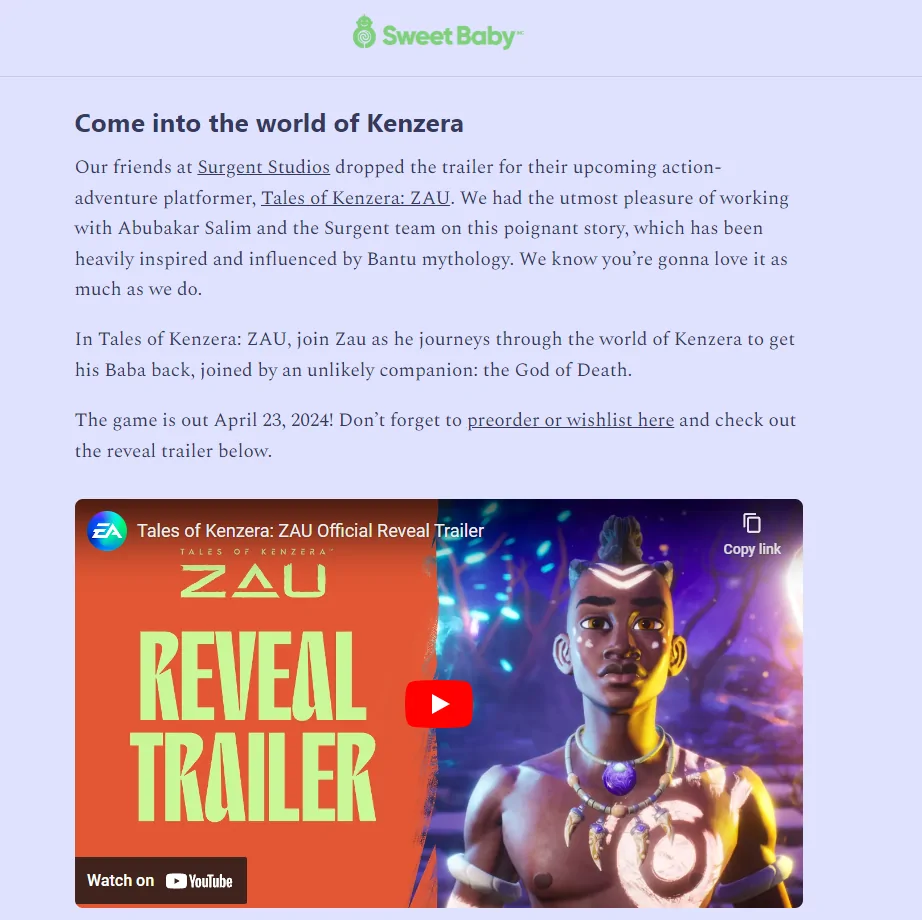 The message continues with the usual corporate spiel: ‘Everyone at Surgent worked incredibly hard to create Tales of Kenzera: ZAU, a game that truly comes from the heart. Their passion, creativity, and dedication are nothing short of extraordinary.’