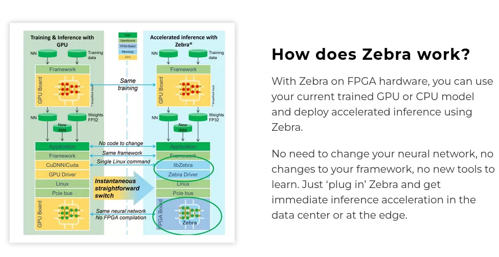 AMD have bought out a company called Mipsology, a French software start-up firm focusing entirely on AI software, such as their Zebra AI accelerator. Mipsology’s Zebra AI software offers compatibility with FPGAs, including those from AMD-Xilinx. The software is promoted as a powerful solution that can rival GPU inference performance when deployed on FPGAs (field-programmable gate arrays).