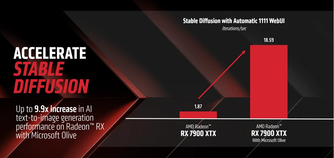 AMD recently established that their RX 7000 series graphics cards provide immense AI potential and crucially better AI performance per dollar than the likes of NVIDIA’s RTX 4080 and below, with stable diffusion thanks to DirectML and Microsoft Olive showcasing a near 10X increase in image generative performance.