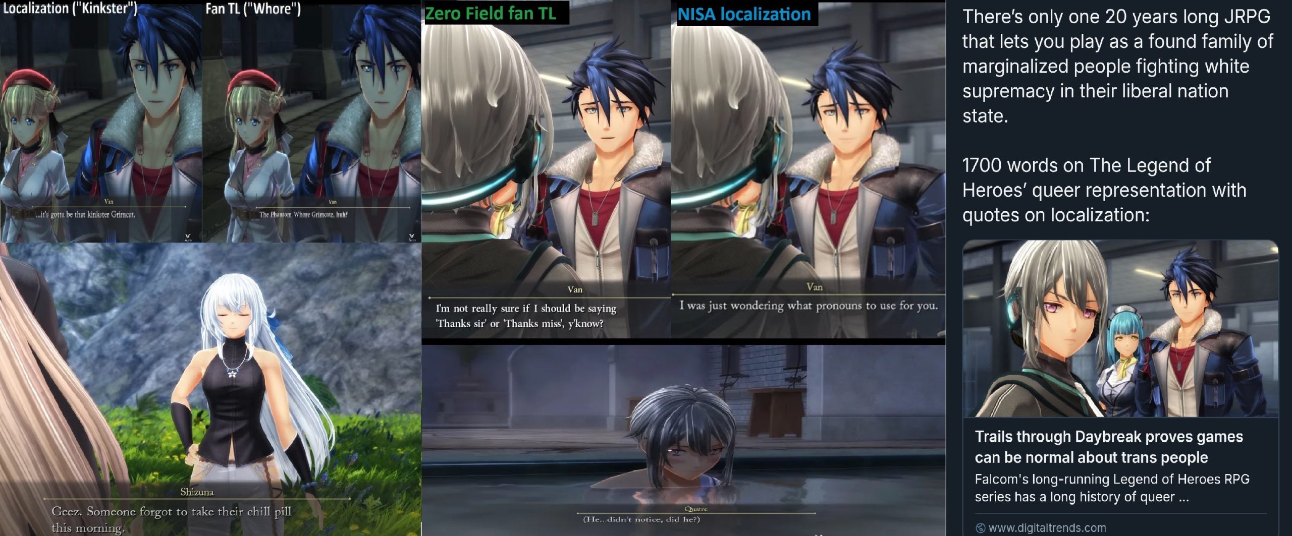 We’ve seen this pattern play out time and time again—Japanese characters with well-defined male identities being rewritten to fit Western ideological narratives. Whether or not they cross-dress or present femininely is beside the point; the fact remains that their identities are being forcibly altered through localization to fit a Western transgender narrative.