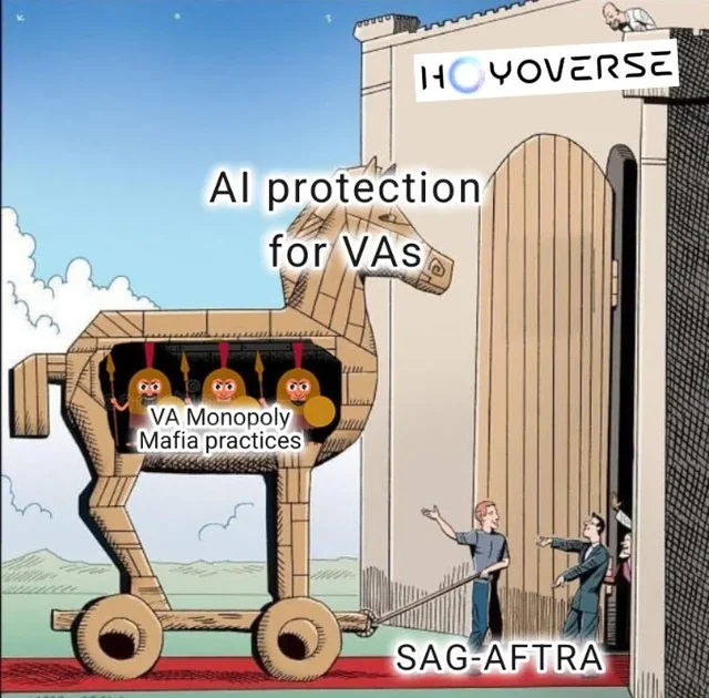 The sense of entitlement among some voice actors is further reflected in the wider implications of the SAG-AFTRA strike. Though publicly presented as a stand against AI threatening jobs, the underlying push for a union monopoly hints at a broader goal: controlling the English dubbing space for foreign media, including titles like HoYoverse’s games.