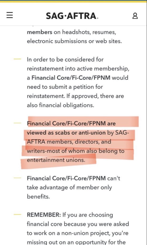 The irony? Internal SAG-AFTRA materials explicitly label “Financial Core” members—those who continue working while stepping outside union control as “scabs” and “anti-union.” This suggests the issue is less about protecting against AI voices and more about consolidating power and control over the industry.