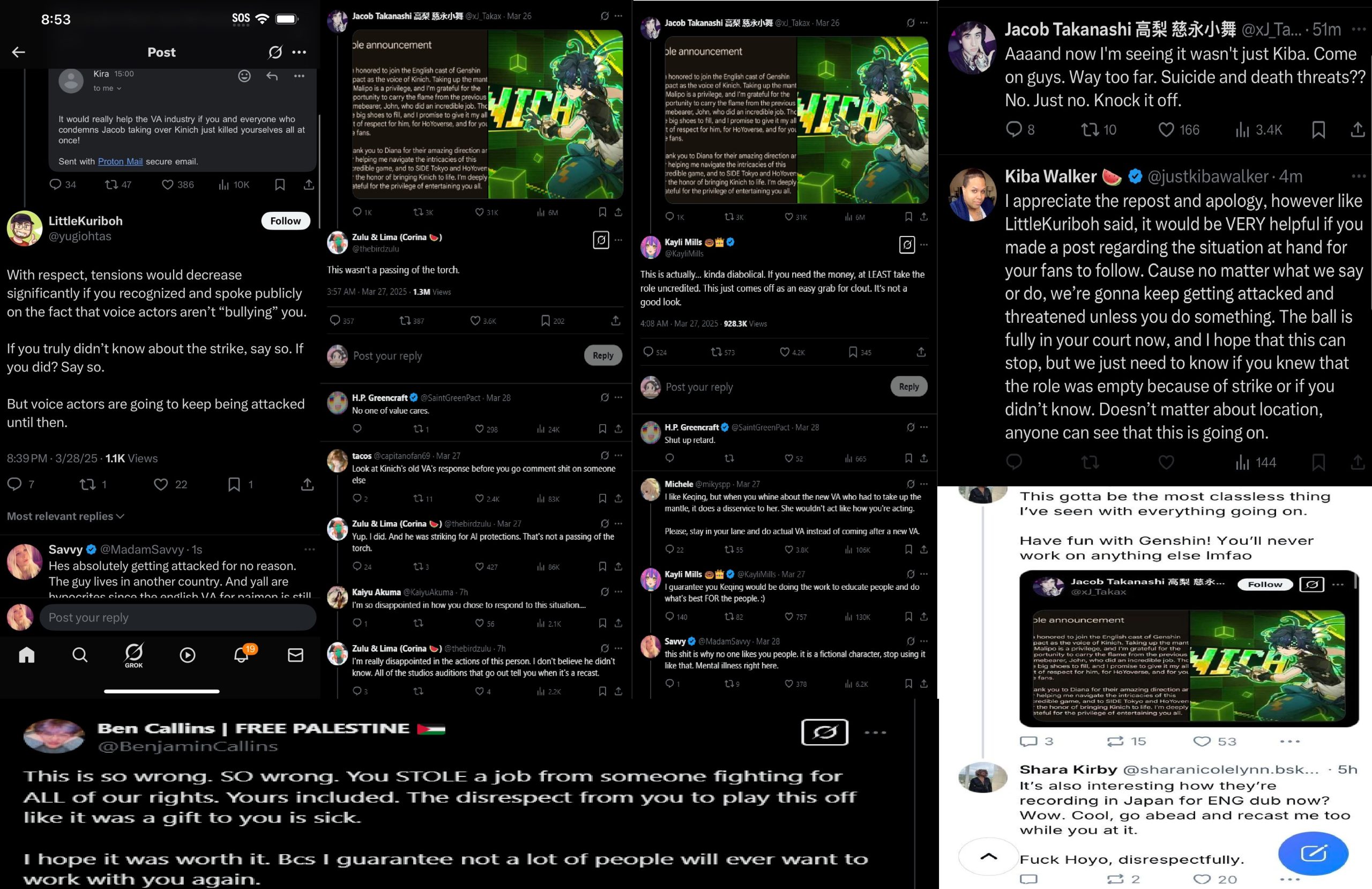 The backlash against Takanashi escalated into targeted harassment. Voice actors like Ben Callins and Shara Kirby (Candace in Genshin Impact) made veiled comments implying that Takanashi’s career prospects would suffer.