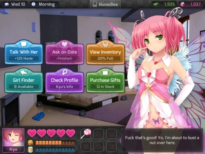 The game kicks off with you meeting Kyu, a flirtatious love fairy who becomes your dating coach, helping you navigate the world of romance. As you meet and date a diverse cast of women, each with their own distinct personalities, interests, and backstories, Kyu will guide you to improve your dating skills to get inside their pants.