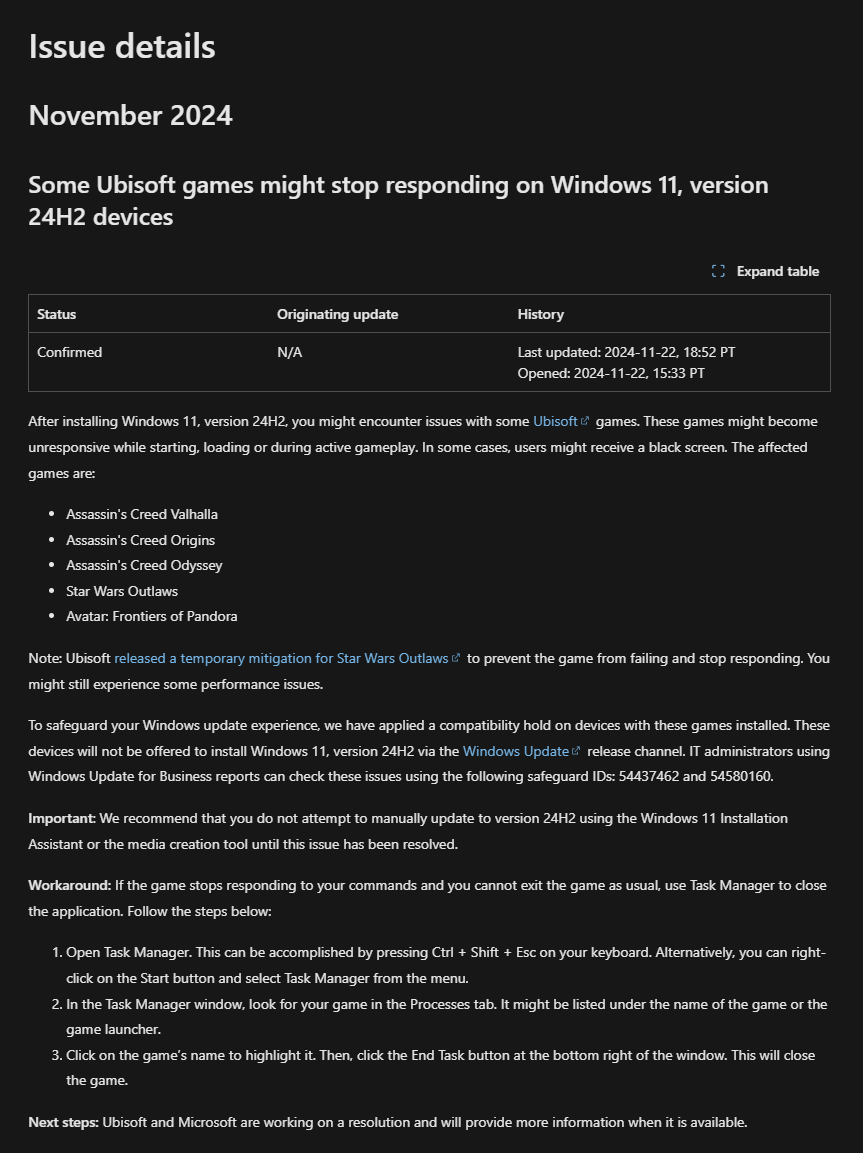 In response, Microsoft has implemented a compatibility block for devices with affected Ubisoft games installed. “These devices will not be offered the option to install Windows 11, version 24H2 via the Windows Update release channel,” Microsoft confirmed.