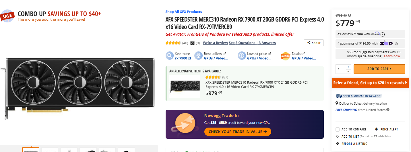The RTX 4070 Ti also makes little sense to purchase over AMD’s Radeon RX 7900 XT which can also be found for $800 or sometimes slightly lower on special, such as the $780 XFX Speedster MERC310 currently on Newegg.
