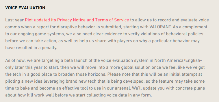 Riot Games is updating their approach to monitoring in-game voice communications. They plan to implement stricter and more specific policies regarding prohibited hateful rhetoric.