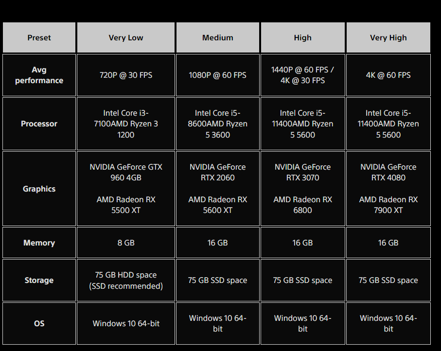 Those aiming for maximum graphical fidelity at 4K resolution may find themselves needing hardware upgrades such as NVIDIA’s RTX 4080 or AMD’s Radeon RX 7900 XT.