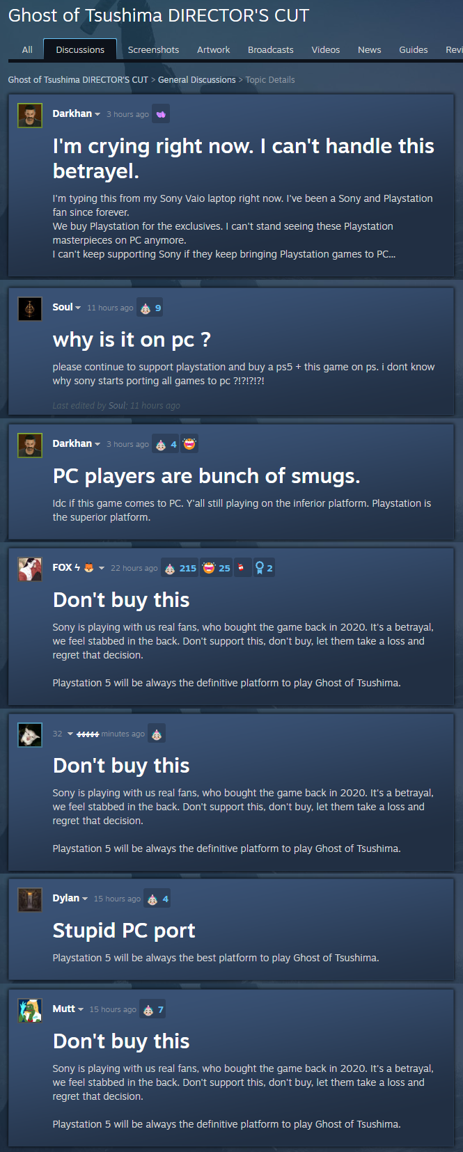 Sony is clearly dedicated to delivering their best PC port yet with Ghost of Tsushima, as evidenced by the inclusion of cross-play functionality and the PlayStation UI. It’s likely that future releases will follow suit, allowing for interconnection and infighting amongst Sony’s most unhinged followers, devastated by their console becoming another useless port box as PC gamers flex their superiority.