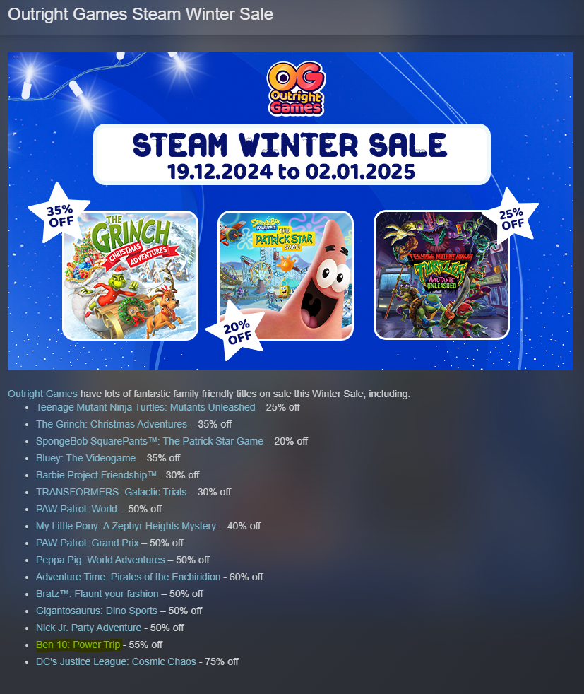 Meanwhile, Ben 10: Power Trip and Ben 10 are also still available across all major platforms and are part of ongoing sales into January.
